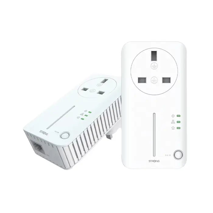 The Strong Powerline 600Mbps Duo Adapter Kit V2 extends your wired internet connection through existing electrical wiring, converting standard power sockets into reliable network access points with speeds of up to 600Mbps. It is ideal for streaming, online gaming, and stable data transfer.